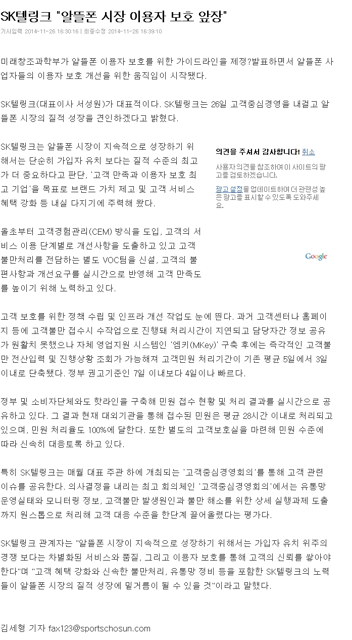 SK텔링크, 알뜰폰 시장 이용자 보호 앞장 선다 페이지 정보 작성자 관리자 작성일14-11-27 18:20 조회6,669회 댓글0건 이전글 다음글 목록 본문 SK텔링크, 알뜰폰 시장 이용자 보호 앞장 선다. 댓글목록 등록된 댓글이 없습니다. 이전글 다음글 목록