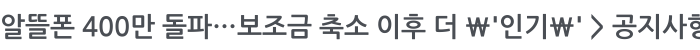 알뜰폰 400만 돌파…보조금 축소 이후 더 '인기' 페이지 정보 작성자 관리자 작성일14-10-08 10:58 조회4,406회 댓글0건 이전글 다음글 목록 본문 알뜰폰 400만 돌파…보조금 축소 이후 더 '인기' 댓글목록 등록된 댓글이 없습니다. 이전글 다음글 목록