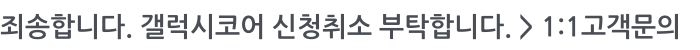 죄송합니다. 갤럭시코어 신청취소 부탁합니다.
