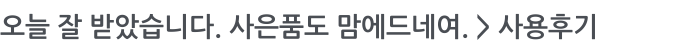 오늘 잘 받았습니다. 사은품도 맘에드네여.
